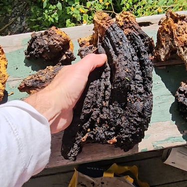 Chaga, also known as Inonotus obliquus, is meticulously harvested by me-Joe from The 360 Forager in the pristine wilds of Maine. This unique fungus is known for its numerous health benefits and undergoes a careful process that not only preserves its natural properties but also enhances its potency. The entire process, from Harvesting through dehydrating, hand grinding and Incense production is carried out in Maine, where a commitment to health and quality is paramount. Each step is performed with the utmost care, ensuring that every product reflects the rich, organic essence of this remarkable fungi. By focusing on traditional methods and the purity of the ingredients, We guarantee that every batch of chaga delivers optimal wellness to those who seek its powerful benefits. Experience the therapeutic qualities of chaga, crafted with passion and dedication in the heart of Maine.