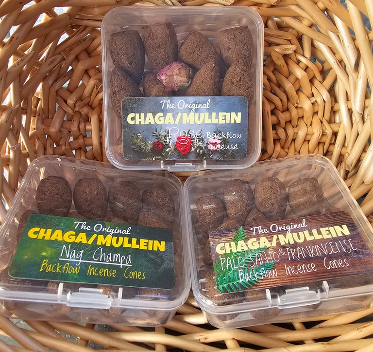 The First of its Kind Chaga/Mullein Backflow Cone Incense Collection
